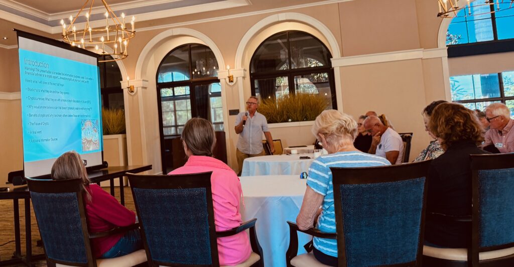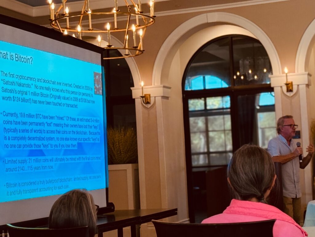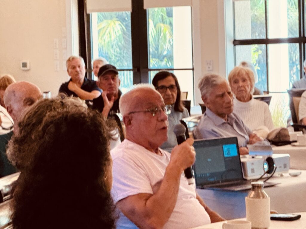 The Community Association hosted two educational seminars on November 3 about Artificial Intelligence (“AI”) and Cryptocurrency. Residents were enlightened on the subjects and peppered the speakers with questions on both subjects. Roger Navarro, Information Technology Director for the City of Venice, and Captain Eric Wood, Venice PD, presented on “AI”.