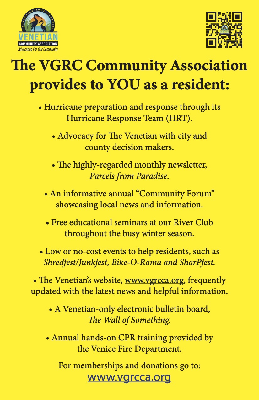 The VGRC Community Association has compiled its 2025-26 series of events and seminars referred to as the Knock Your Socks Off III season. You will see some new and exciting events as well as repeats of previous resident favorites. We will elaborate on all of these events via our monthly newsletter, Parcels from Paradise. Get your calendar out and mark those events you would like to attend when we publish the list in the next few months.