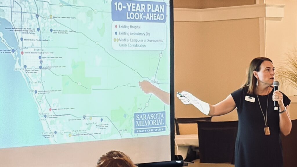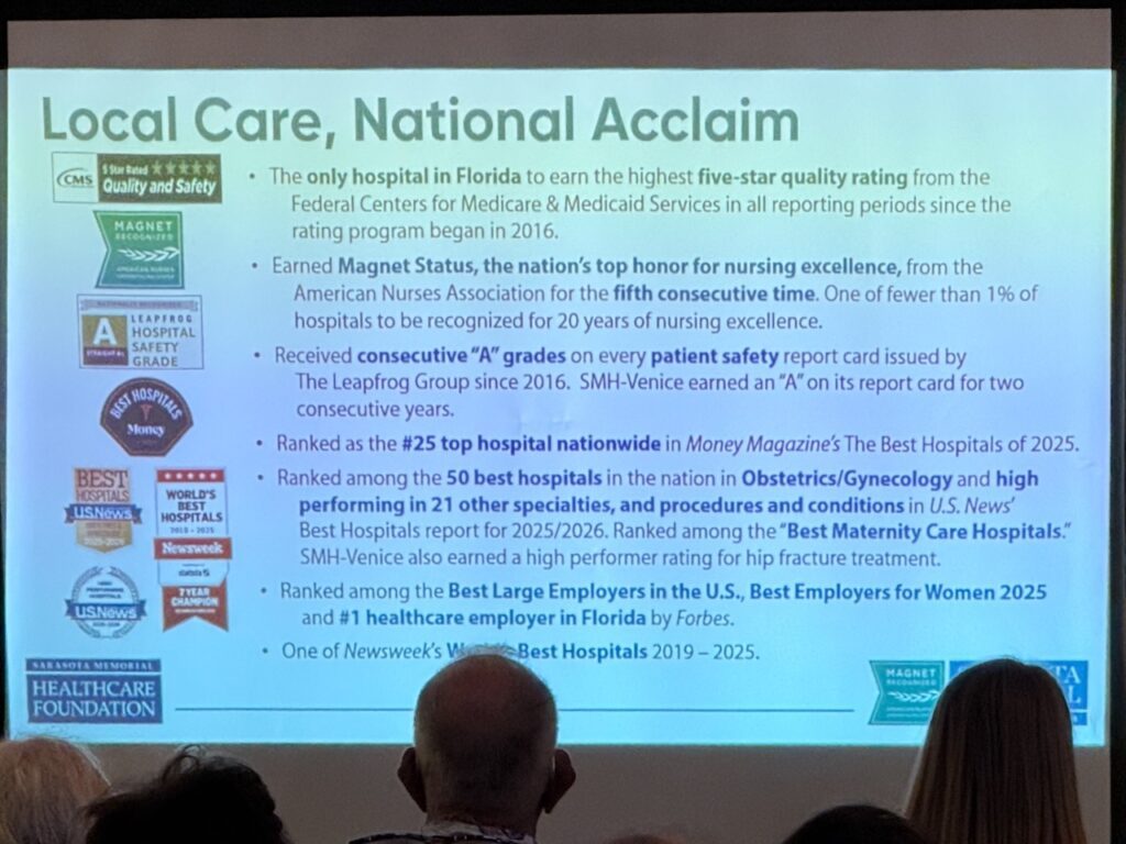 Stacey Corley, the Foundation President at Sarasota Memorial Hospital (SMH), provided an update on the remarkable growth and development at SMH. During a seminar held at the River Club on October 28, several growth initiatives were discussed. Notably, Sarasota Memorial stands as the only hospital in Florida to have consistently earned the Centers for Medicare & Medicaid’s highest 5-star rating for overall quality and safety since the rating system was introduced in 2016.