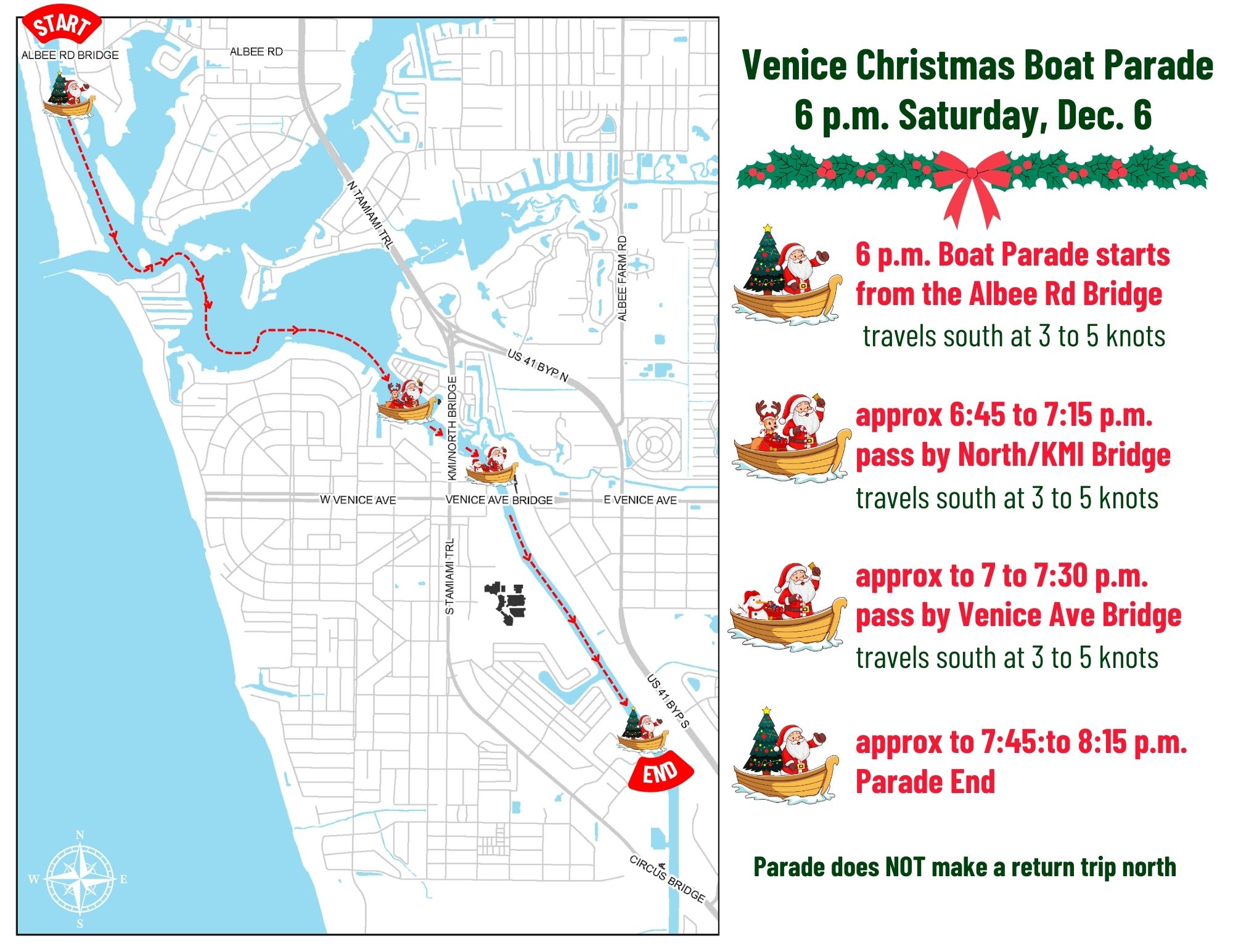 A reminder that the 37th Annual Venice Christmas Boat Parade sets sail this Saturday, Dec. 6 in the Intracoastal Waterway. Boats get underway at 6 p.m.