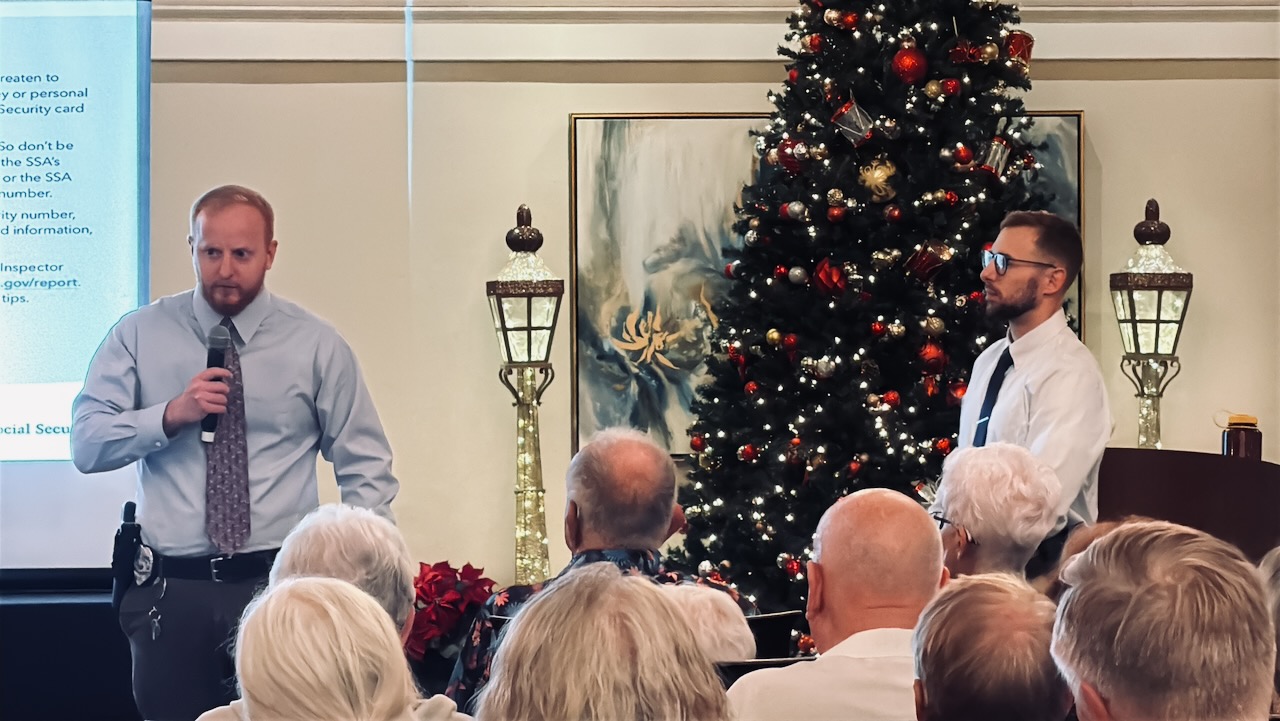 On December 8, two officers (Sgt Montez and Det. Lt. Kenny) from the Venice Police Department presented an informative overview of prevalent predatory scams that pose a significant threat to everyone. The presentation was well-received and provided valuable insights into the extent and severity of these dangers.