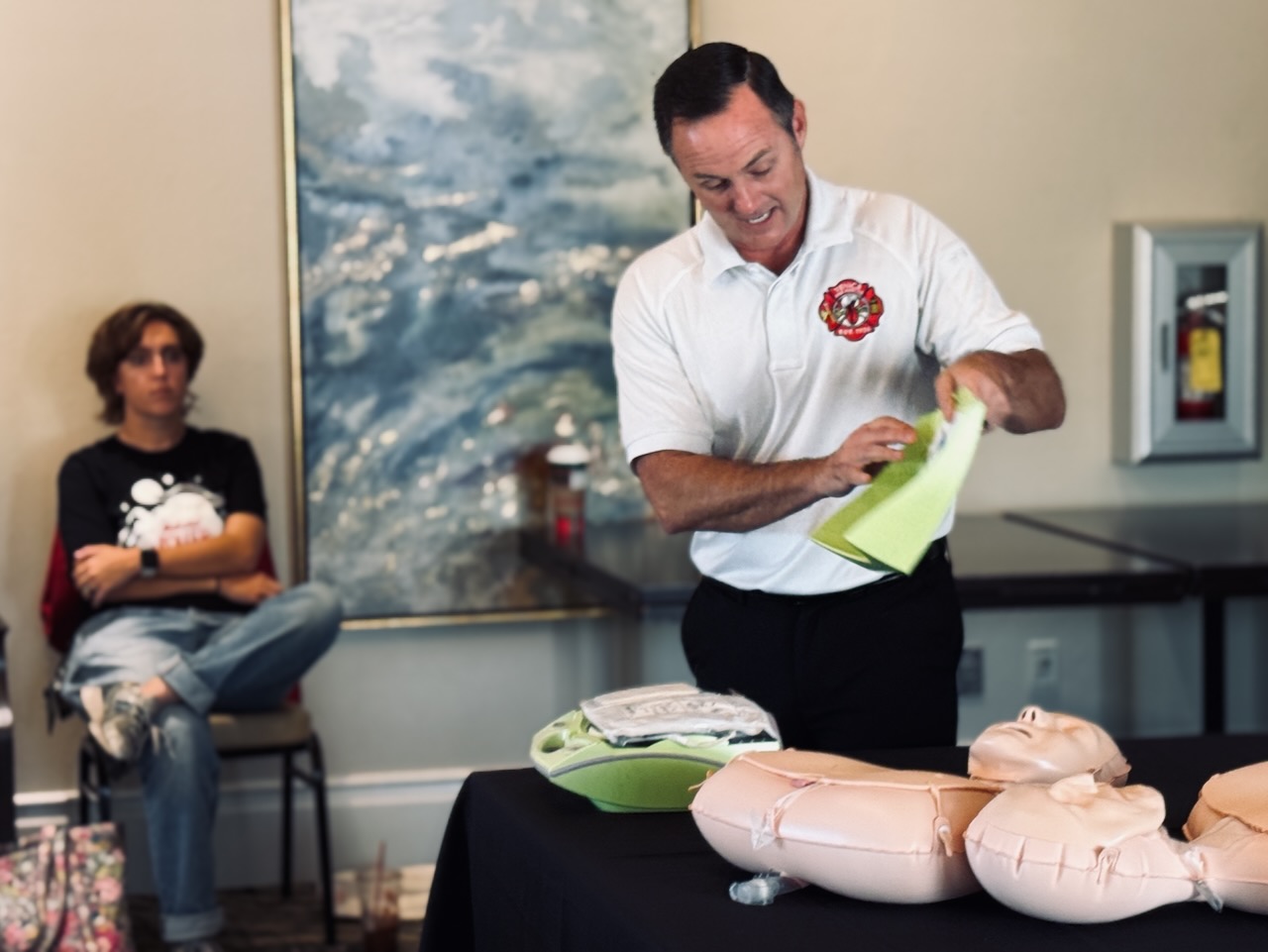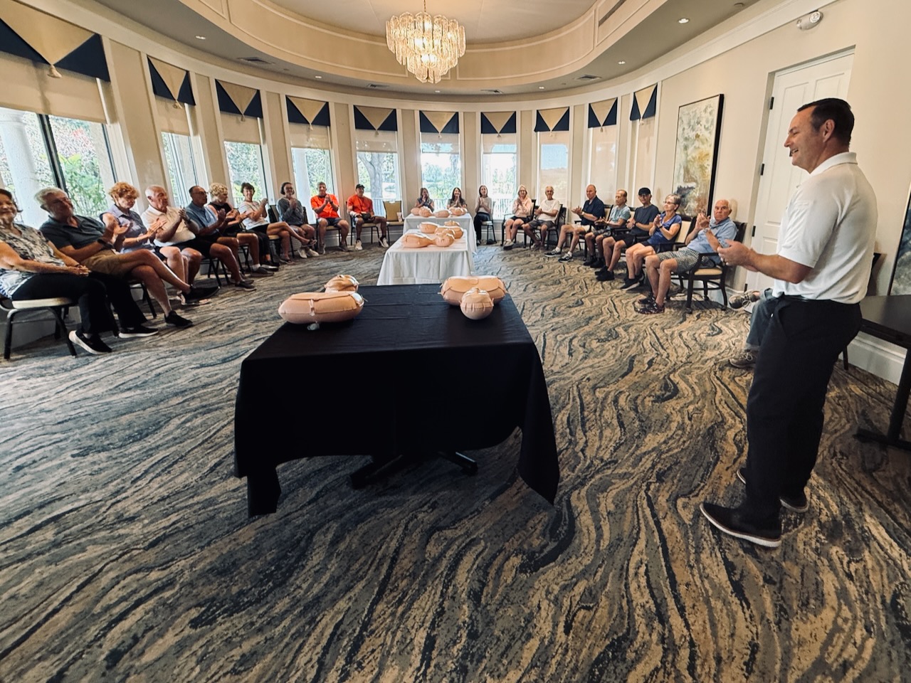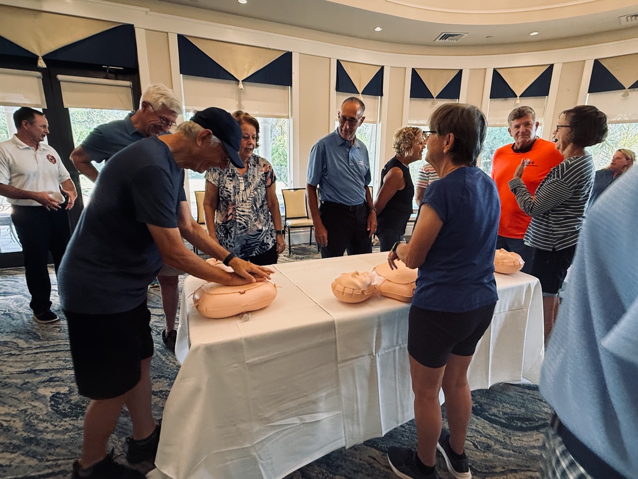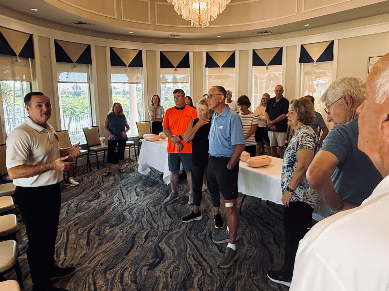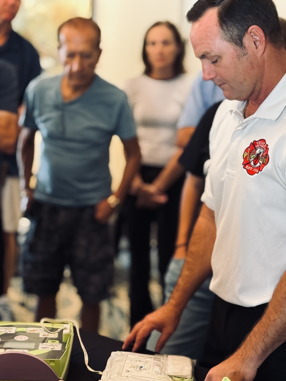 On November 18, Venice Fire Chief Frank Giddens conducted two classes for residents on CPR, AED, and Heimlich Maneuver training. This training, sponsored by your Community Association, has been ongoing at the VGRC for over a decade, training hundreds of residents in life-saving techniques. Notably, training residents has directly resulted in at least two lives saved at the Venetian. This information was previously reported in an article on this website in August 2023.