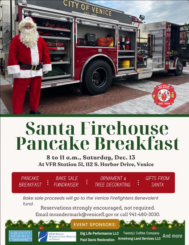 Kicking off the holiday season for over 45 years, the City of Venice Holiday Parade is always the Saturday after Thanksgiving. The 49th parade is Saturday, Nov. 29, 2025 beginning at 6:30 p.m. and kicking off the City’s Centennial Celebration. See details HERE.
